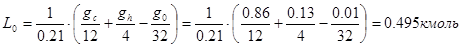 Теоретически необходимое количество воздуха для сгорания 1 кг жидкого топлива