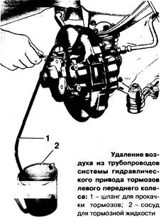 Воздух, попавший в гидропривод тормозов при замене трубопровода, шлангов, уплотнительных колец или негерметичности системы, вызывает увеличение рабочего хода педали тормоза, ее мягкость" и значительно снижает эффективность действия тормозов.