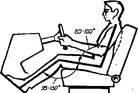 Правильність посадки в кабіні можна визначити і за допомогою кутів між гомілкою і стегном (95°-138°), між корпусом і стегном (80°-100°).