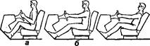 Ці вимоги зручної посадки реалізуються так: переміщуючи сидіння вперед-назад (а) водій домагається того, щоб при натиснутій педалі зчеплення ліва нога залишалась злегка зігнутою в коліні. Після регулювання нахилу спинки сидіння (б) до неї повинна щільно прилягати спина водія.
