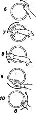 На практиці це виглядає так. Переносячи руку по прямій від цифри 5 до цифри 12, одночасно зближають пальці з ободом. Руки рухають у напрямі обертання колеса. Повний обхват завершується між цифрами 1 і 2.