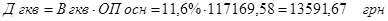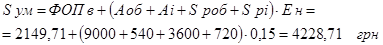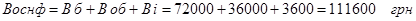 Воснф = (Вб+Воб+Ві) ∙Ен = (72000 + 36000 + 3600) ∙ 0,15 = 16740 грн