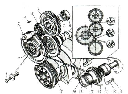 Рис. 1.4 Установка шестерень приводу агрегатів двигуна КамАЗ-740: