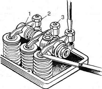 1 — коромисло; 2 — контргайка; 3 — регулювальний гвинт