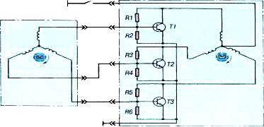 Імпульси напруги від кожної обмотки датчика подаються по проводах на бази транзисторів Т1, Т2, Т3 (КТ801А). У результаті транзистори працюють у ключовому режимі, подаючи через вимикач запалювання живлення в статорні обмотки електродвигуна приймача (покажчика). Резистори R1 – R6 служать для поліпшення умов перемикання транзисторів. При вимиканні чергового транзистора напруга бортової мережі подається до відповідної обмотки статора електродвигуна. У результаті створюється обертове магнітне поле, що приводить в обертання ротор (постійний магніт) електродвигуна, на валу якого закріплений постійний магніт швидкісного вузла. Через черв'ячну передачу приводиться в дію лічильний вузол. Покажчик датчик