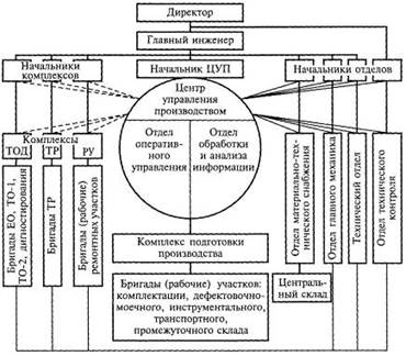 • технологическая связь с отделами ЦУП, производственными комплексами, другими участками, зонами ТО и ТР, постами диагностирования, складами (схема технологического процесса ТО, ТР, диагностирования);