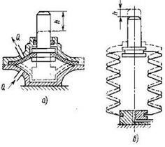 При малых давлениях и перемещениях h в качестве гидро- и пневмодвигателей поступательного движения применяют мембранные (рис. 8,а) и сильфонные (рис. 8,б) системы.