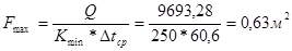 Ориентировочно определим max величину площади поверхности нагрева теплообменника.