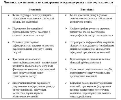 Подальший розвиток українського ринку транспортних послуг, зміна конкурентних умов на