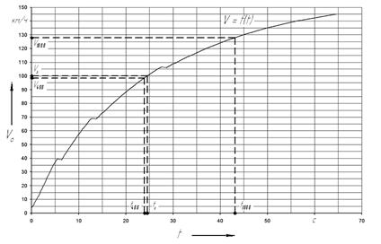 1) задаемся максимальным значением скорости движения в соответствии с Правилами дорожного движения, для легковых автомобилей, а также грузовых автомобилей полной массой не более 3,5 т на автомагистралях скорость не более