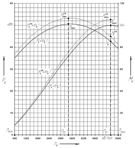 Рисунок 4.1 Мощностная характеристика автомобиля на высшей передаче