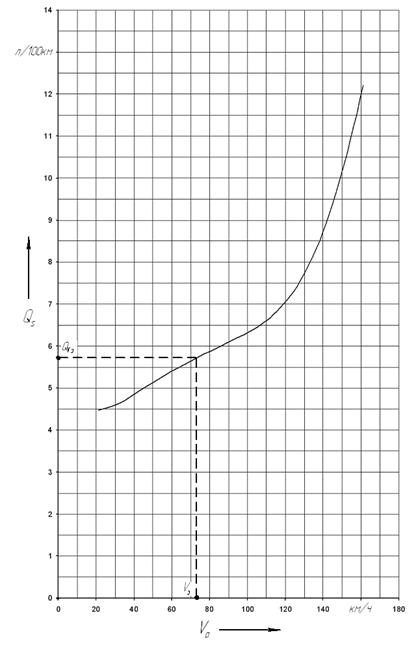 3) по графику топливной характеристики установившегося движения для эксплуатационной скорости Vэ определяем расход топлива QVэ :