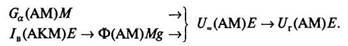 Исполнительное устройство ИУ осуществляет преобразование Uy(AKM) E ^ Rk(AKM) E. В регулирующем органе РО происходит следующее преобразование: ЛК(АКМ) Ј'-* 1В(АКМ) Е.