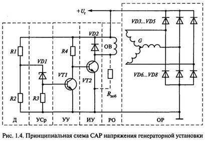 Принципиальная схема САР напряжения генераторной установки представлена на рис.1.4.