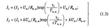 Решая систему уравнений (1.3), можно найти выражения для токов 1Х = / [(с, ух, к, тв); /2 = /2(с, ут, к, тв) и пульсацию силы тока возбуждения А/в = /j - h, где ут = хх/Т - относительная длительность импульса; тв = Т/Твм - относительная длительность периода переключений реле; Т=тх + т2 - период переключений реле. Среднюю силу тока возбуждения определяют путем интегрирования: