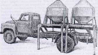В Москве широко распространена практика централизованной доставки сухого строительного раствора при капитальных ремонтах зданий. Для этих целей используется специализированный аито-мобиль У-137 (шасси ГАЗ-53-07) со съемными кузовами-цистерна ми У-158 (рис. 3).