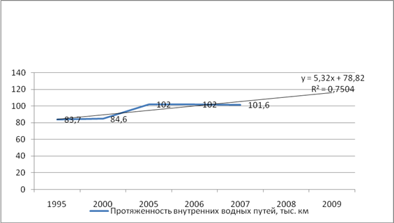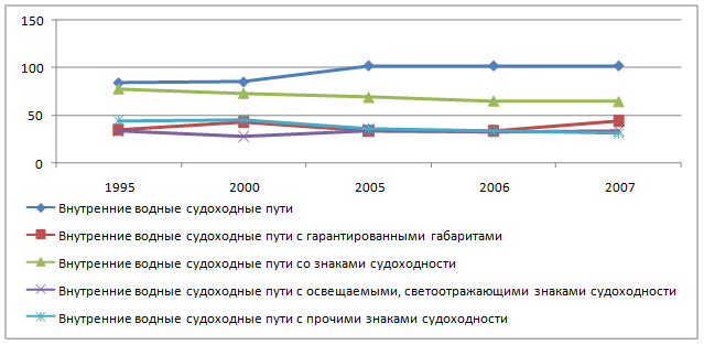 Общая протяженность внутренних водных путей с гарантированными габаритами судовых ходов по сравнению с 2007 г. увеличена на 10,3% и доведена до 48 тысяч 112 километров.