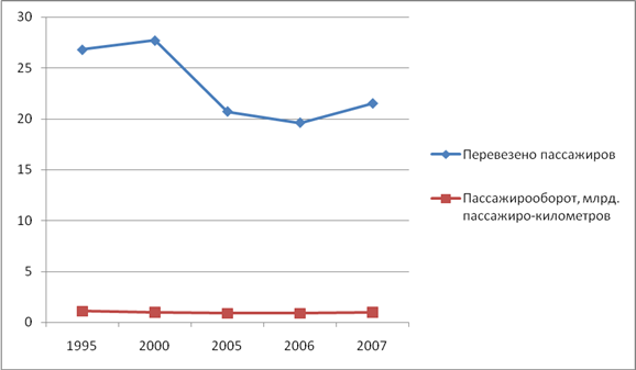 В 2008 г. объем перевозок пассажиров снизился на 7,9% и составил 19,8 млн.чел.