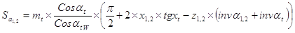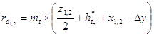 Максимальный коэффициенты смещения не может быть определён непосредственно, отсутствие заострения может быть выявлено после подсчёта толщины зуба по окружности вершин и удовлетворено при условии: