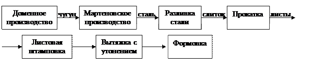 В курсовом проекте ставилась задача разработки технологического процесса изготовления корпуса масляного фильтра для автомобилей ВАЗ 2101-2106, которая успешно реализована, и состоит из производства чугуна в доменной печи, производства стали в мартеновской печи, разливки стали, прокатки, листовой штамповки, вытяжки с утонением стенки.