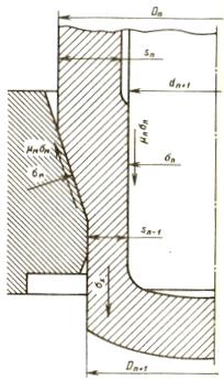 Силы трения на наружной поверхности заготовки способствуют увеличению растягивающих напряжений σ x , действующих в стенках протянутой части заготовки, а силы трения на внутренней поверхности заготовки как бы разгружают опасное сечение уменьшая растягивающие напряжения в стенках протянутой части заготовки. Эта особенность вытяжки с утонением и является основной причиной сравнительно больших допустимых деформаций и значительного приращения относительной высоты заготовки за один переход.