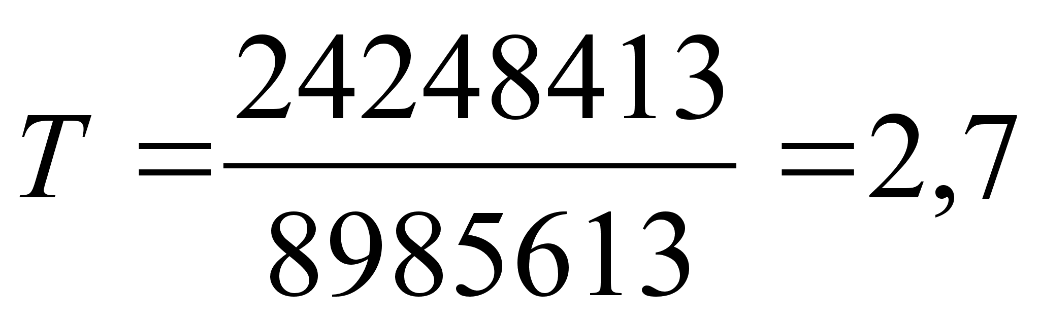 Продолжительность одного оборота оборотных средств вычисляется по формуле: