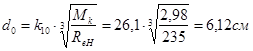 Отстояние центров болтов от кромки фланцев принимаем равное толщине фланца.