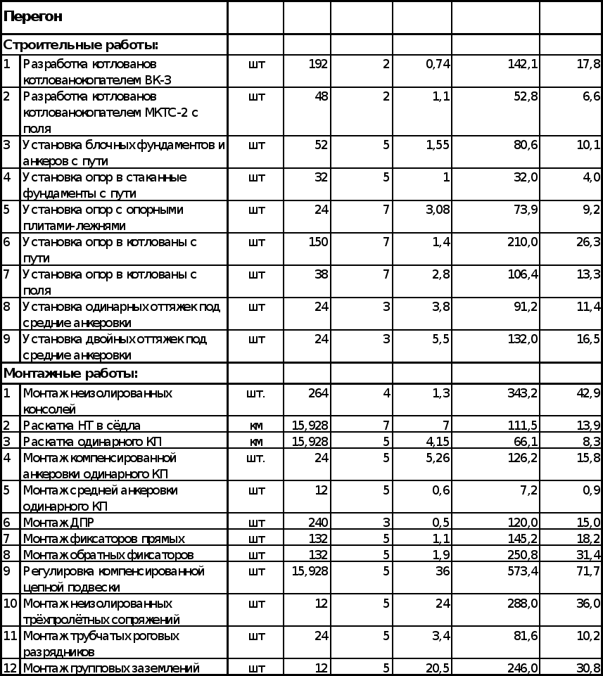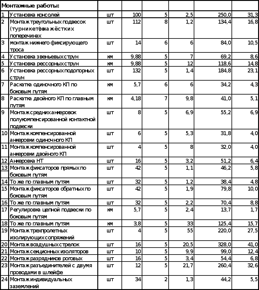 | 4 | Установка звеньевых струн | км | 9.88 | 5 | 7 | 69.2 | 8.6 |