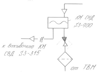 КМ ВД засасывает пар хладагента, нагнетаемый КМ НД и дальнейшим сжатием его.