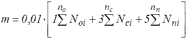 где n 0 , п c , пп - количество точек ответвления, слияния и пересечения; N 0 i , Nci , N п i – меньшие интенсивности из каждой пары конфликтующих между собой транспортных потоков. m1 = 0,01*[1*(195+130) +5*(195+98)] = 22 m2 = 0,01*[1*(130+130) +5*(65+65)] = 9 |