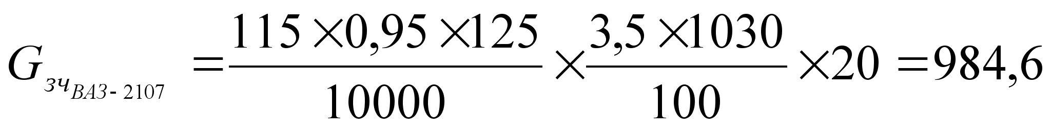 Абсолютные значения нормативных показателей определяются произведением соответствующего приведённого удельного показателя на списочное число подвижного состава, одинакового по классу или грузоподъёмности [4, c.156]: