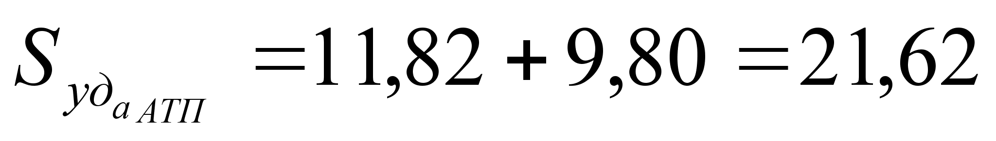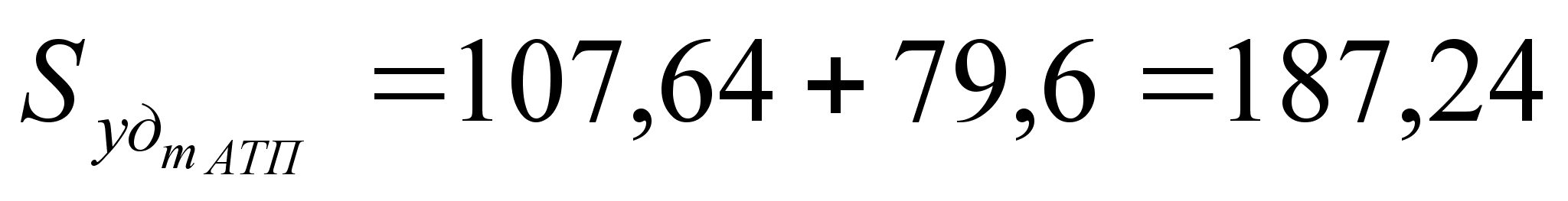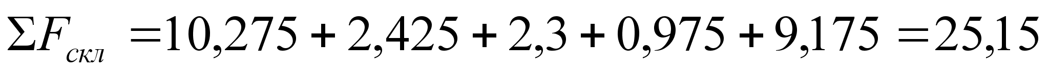 Суммарная площадь оборудования равна: