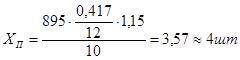 –коефіцієнт, що враховує нерівномірність прибуття автомобілів на пост (приймемо в межах 1,1..1,5);