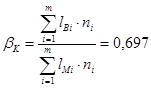Середній коефіцієнт використовування пробігу автомобіля на колових маршрутах визначаю за залежністю: