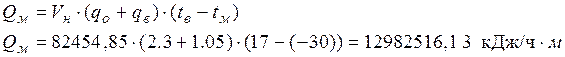 Максимальный часовой расход тепла (в кДж/ч) для отопления и вентиляции вышеперечисленных помещений: