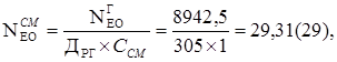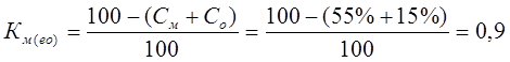 Км(ео) - коэффициент механизации, снижающий трудоемкость ЕО рассчитывается по формуле: