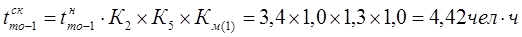 Км(1) – коэффициент механизации, снижающий трудоемкость ТО-1 при тупиковом методе производства принимается равным 1,0.