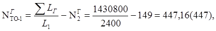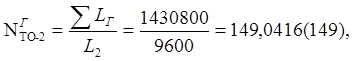 где L1 и L2 – расчетные периодичности ТО-1 и ТО-2, км.
