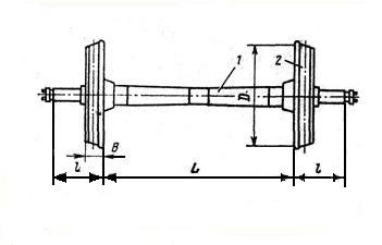 Колесная пара (Рис.1.) – одна из ответственных частей вагона. Она направляет движение вагона по железнодорожному пути и воспринимает все нагрузки, передающиеся от вагона на путь и обратно. Безопасность движения поездов во многом зависит от конструкции, материала, технологии изготовления и ремонта, а также от качества осмотра колесных пар. Конструкция колесных пар оказывает влияние на плавность хода, сопротивление движению и величину сил при взаимодействии вагона и пути. Типы, основные размеры и технические условия на изготовление определяются государственными стандартами, а содержание и ремонт – «Правилами технической эксплуатации железных дорог» (ПТЭ) и «Инструкцией по осмотру, освидетельствованию, ремонту и формированию вагонных колесных пар» (ЦВ 3429).