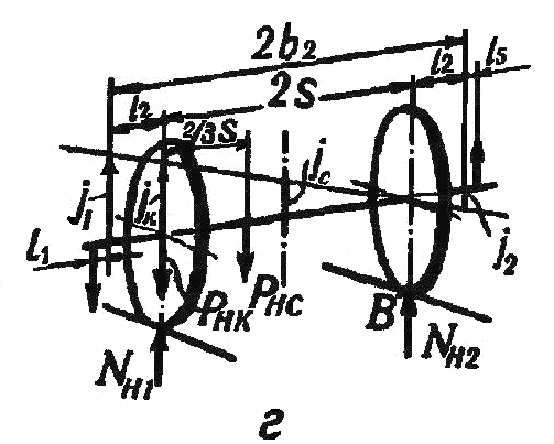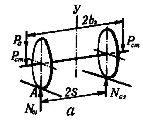 При проведении расчета учитывается наиболее неблагоприятное состояние несимметричного вида колебаний. Динамическую нагрузку считают приложенной к центру одной шейки, а на другой ее принимают равной нулю.