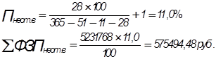 где Пнеот.в - процент заработной платы за неотработанное время (п. 4.1.7.)