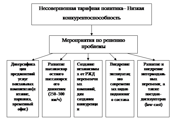 На вокзале прибытия пассажиру как минимум должна быть предложена аренда автомобиля. Дерево решений по проблеме «Несовершенная тарифная политика– Низкая конкурентоспособность» представлено на рисунке 2.