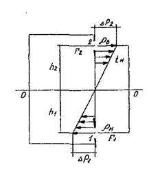 Розрахунок аерації зводиться до визначення необхідної площі приточних F1 та витяжних F2 аераційних отворів, що забезпечують необхідний повітрообмін приміщення цеху (рисунок 8.1)