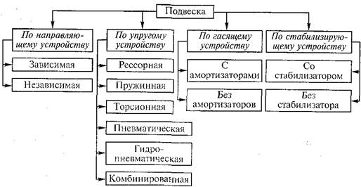 Рис.1 Типы подвесок, классифицированных по различным признакам.