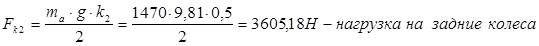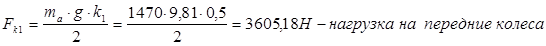 k1 = k2 = 0,5 - коэффициенты распределения массы по осям классического автомобиля.