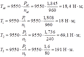 Аналогично определяем передаточные числа для остальных вариантов электродвигателя, оставляя при этом передаточное число редуктора постоянным. Результаты расчетов сводим в таблицу 2
