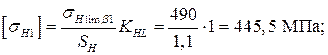 β – коэффициент, учитывающий упрочнение поверхности, применение специальных технологических методов; при отсутствии специального упрочнения или термообработки β = 0,95…0,98 (шлифование); принимаем β = 0,97;
