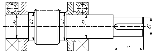Тихоходный вал, d = 38 мм шпонка 10×8×36, t 1 = 5 мм;