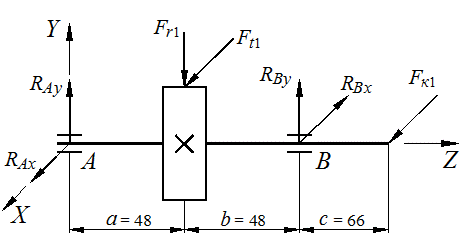 Расчет ведем для сечения вала B (рисунок 10), т.к. в этом сечении возникает наибольший изгибающий момент. Концентрация напряжений обусловлена посадкой подшипника с гарантированным натягом. Диаметр вала d = 35 мм.