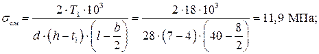 Тихоходный вал, d = 28 мм шпонка 8×7×40, t 1 = 4 мм;
